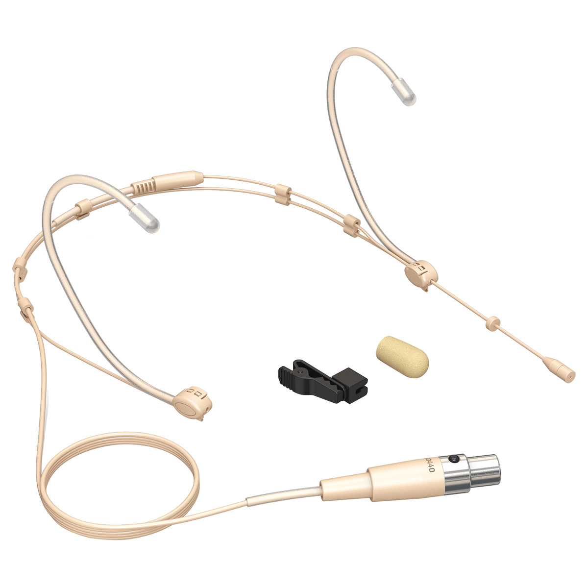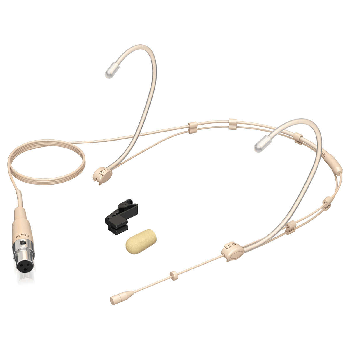 Micrófono de condensador profesional de diadema para una reproducción de voz natural y precisa, ideal como micrófono principal y de apoyo para grabaciones de estudio, presentaciones en vivo, lugares de culto, fitness y teatros, excelente opción para locutores, presentadores, conferencistas, cantantes, músicos, actores e intérpretes que requieren micrófonos manos libres, respuesta de frecuencia optimizada especialmente para transmisores de bolsillo, patrón polar omnidireccional para una calidad sonora cálida y equilibrada con bajo efecto de proximidad, construcción metálica robusta, confiable, de bajo perfil y liviana para actuaciones con micrófono oculto, conector de salida mini XLR de 3 pines chapado en oro para una máxima integridad de la señal, ganchos integrados para las orejas para un ajuste cómodo y casi invisible, longitud del boom ajustable para un posicionamiento flexible, cable integrado de 1.2 metros con conector mini XLR, paravientos discreto y clip para cable incluidos.