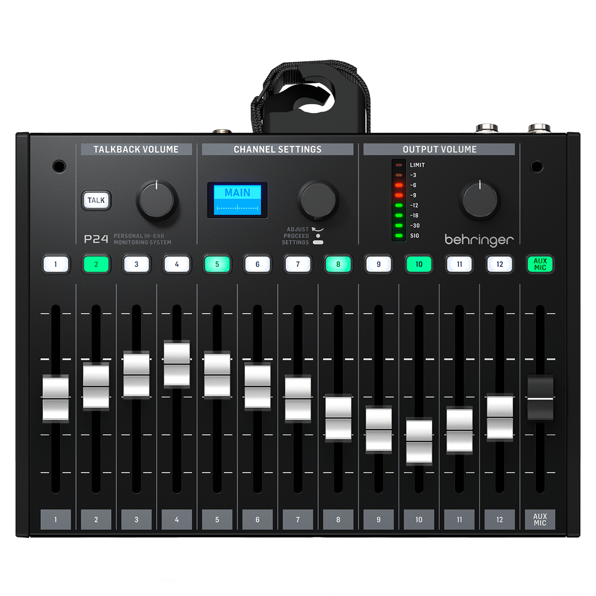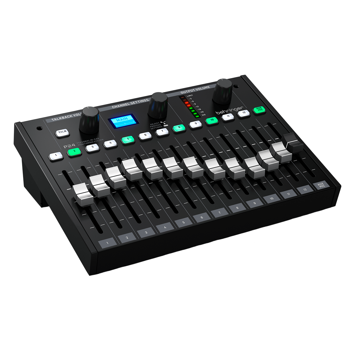 - Canales de retorno para conectar mezclas personales a un P24Hub y enlazar con transmisores.
