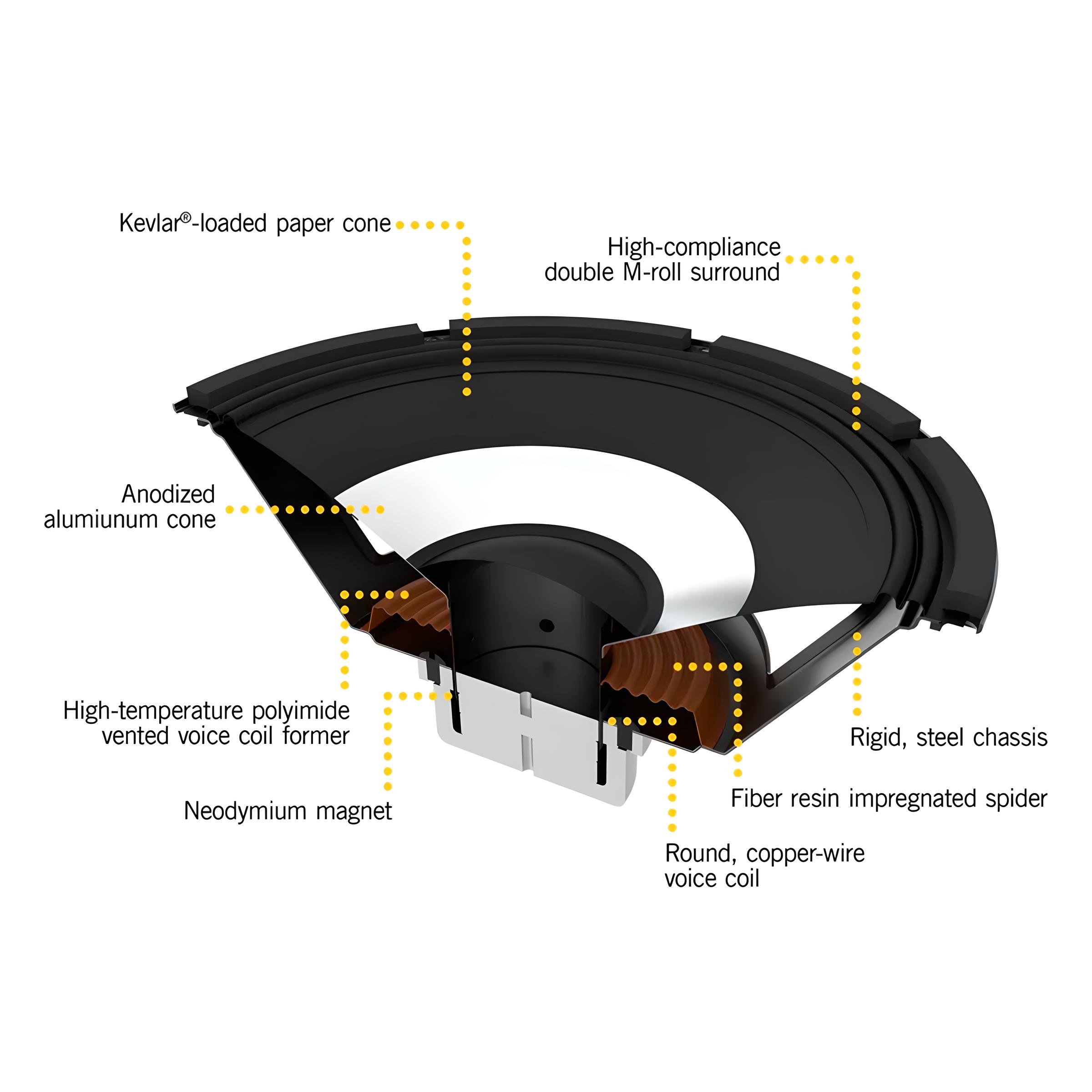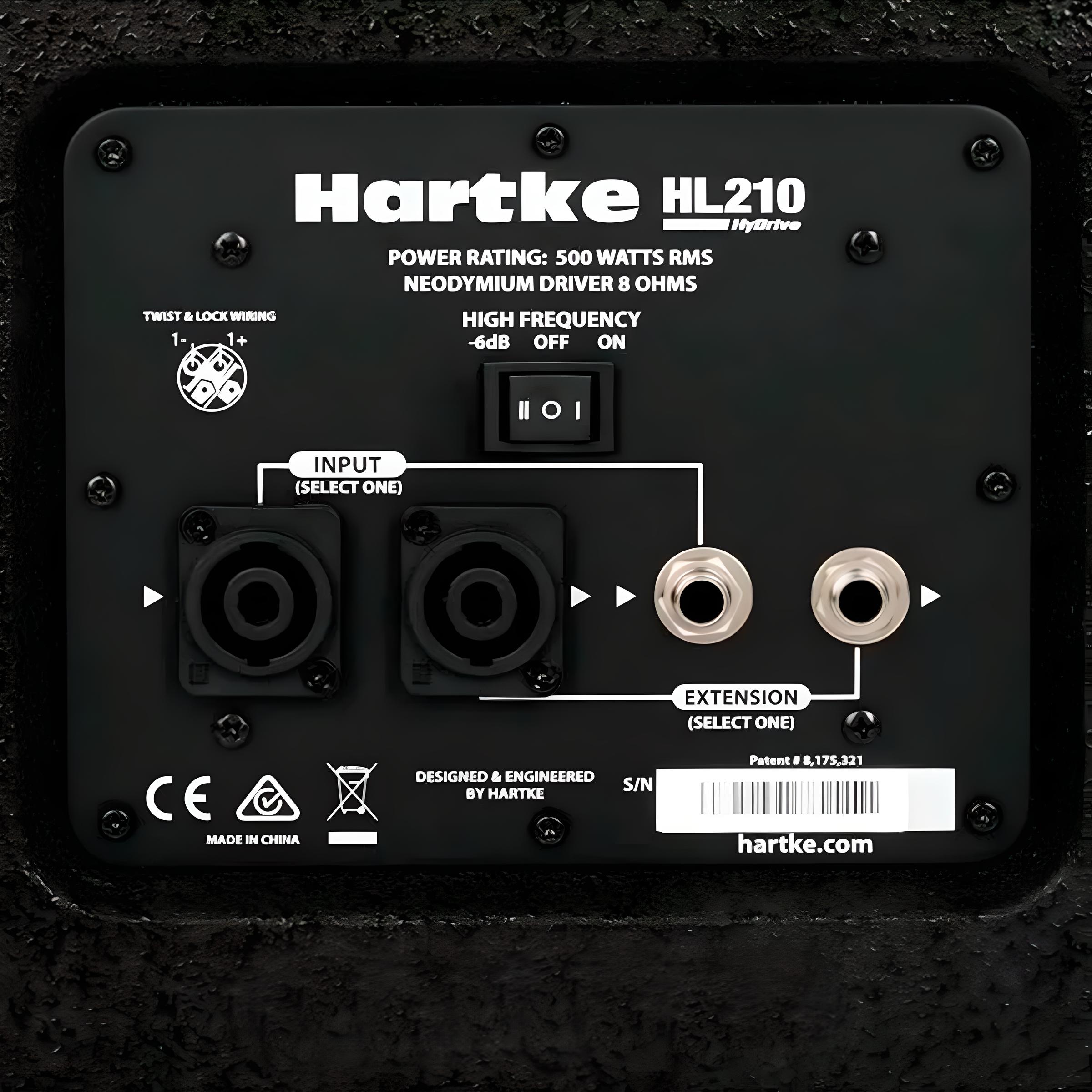 Los altavoces HyDrive presentan una construcción híbrida única: un cono interior de aluminio anodizado para asegurar un rango medio claro y preciso, combinado con un cono exterior curvado de papel reforzado con Kevlar que proporciona graves profundos, cálidos y resonantes. Además, cuenta con un tweeter de 1″ con bocina y un interruptor de nivel de alta frecuencia de tres posiciones (-6dB, apagado, encendido), permitiendo un ajuste fino de los agudos según las necesidades del bajista.