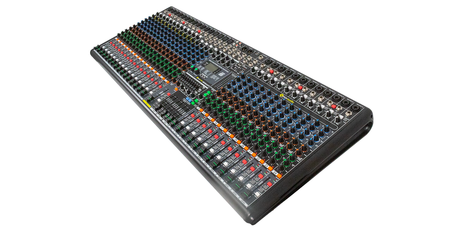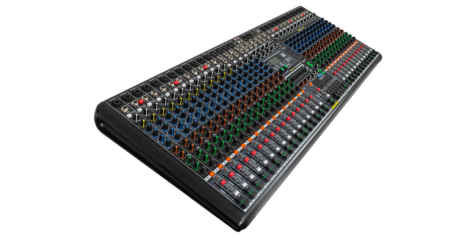 IMXBU32FX, Mezcladora profesional de 32 canales con DSP de 638 efectos, ecualizador gráfico con detección de feedback, reproductor MP3, Bluetooth y tarjeta de sonido USB integrada. Diseñada para conciertos, iglesias, eventos masivos y estudios móviles.