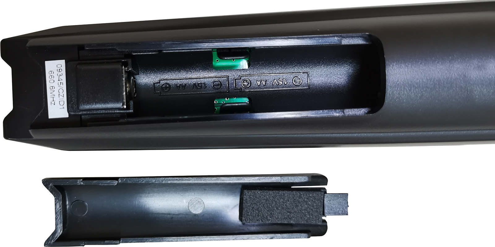 Botn On/Off.Rango de frecuencia: 687.2 – 668.3 MHz.Utiliza dos pilas de 1.5V AA.Duracin de la batera > 5 horas.