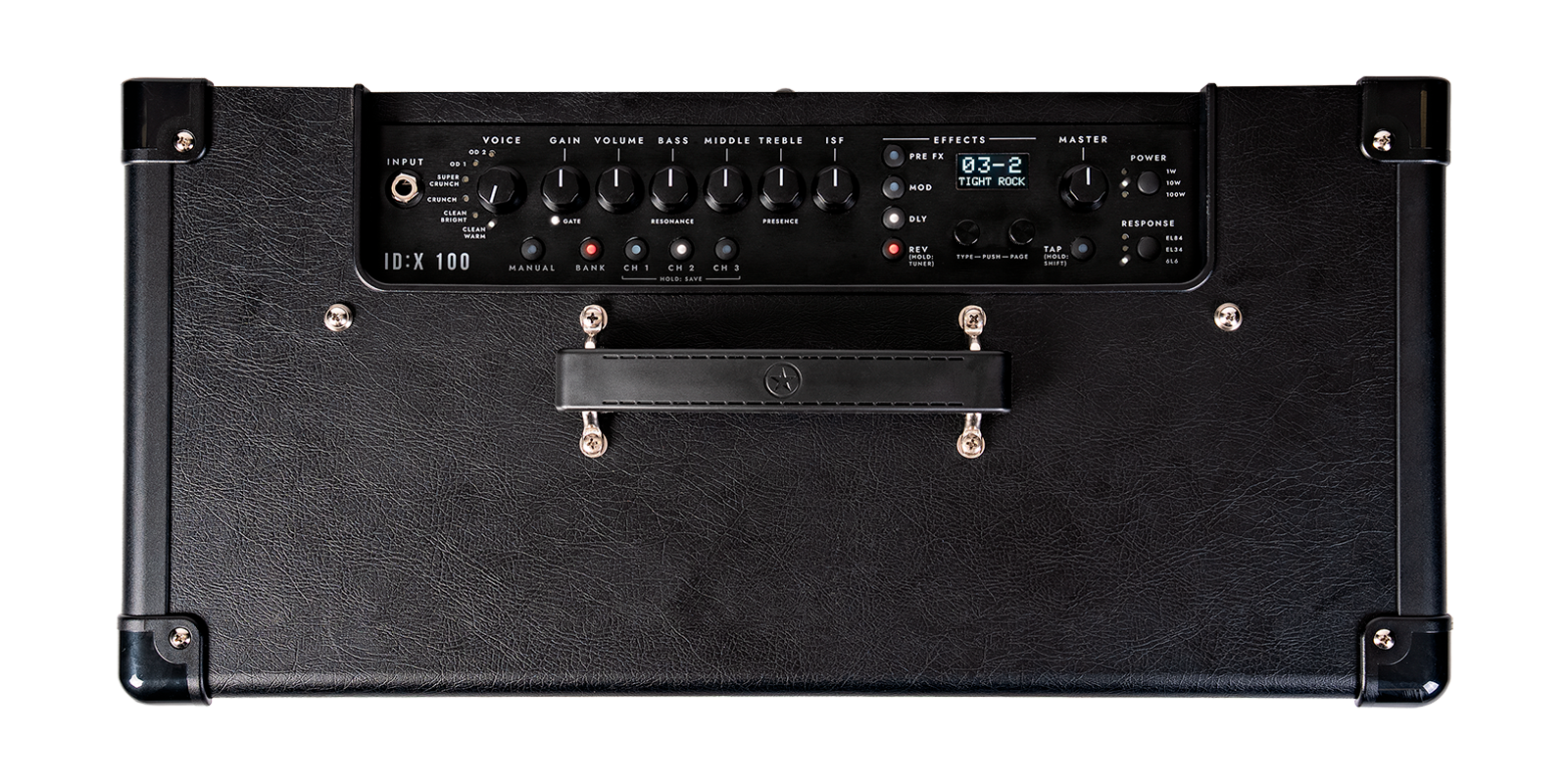 El IDX:100 incorpora simulación de respuesta de válvulas (EL84, EL34 y 6L6) para reproducir la dinámica y el carácter de amplificadores clásicos. Además, cuenta con salida directa CabRig vía XLR balanceada, USB-C para grabación digital, entrada auxiliar y loop de efectos para integración con pedales externos.