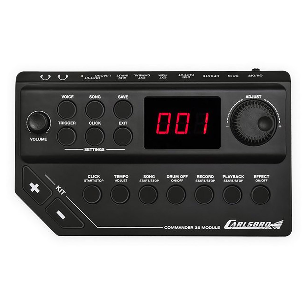 Batería electrónica, ideal para bateristas principiantes y para profesionales que buscan ahorrar espacio en el estudio o usarlo como batería de práctica, compacta y fácil de transportar, 320 voces de percusión de alta calidad, 22 kits de batería prestablecidos, 10 kits de usuario, 20 canciones backing track, efecto de reverb, metrónomo ajustable de 30 a 250 BPM, ajustes de trigger, entrada y salida MIDI, salida de audio USB, 2 salidas de audífonos, salida estéreo, entrada auxiliar, incluye 1 módulo de sonido Commander 25, 1 pad de tarola de 10″ pulgadas de doble zona con parche de malla, 3 pads de tom de 8″ pulgadas de doble zona con parches de malla, 1 pad de platillo de 12″ pulgadas ride de doble zona con choke, un pad de platillo de 10″ para Hi-Hat, 2 pads de platillo de 10″ pulgadas para 2 crahesCrash y Ride con función choke, 1 pedal de bombo, 1 pad de bombo de 8″ pulgadas, 1 controlador de pedal para Hi-Hat, 1 rack de 4 patas de altura ajustable y 1 par de baquetas con soporte para baquetas, 2 cables para crash, 1 cable para pads, 1 llave de batería, facilidad de actualización.