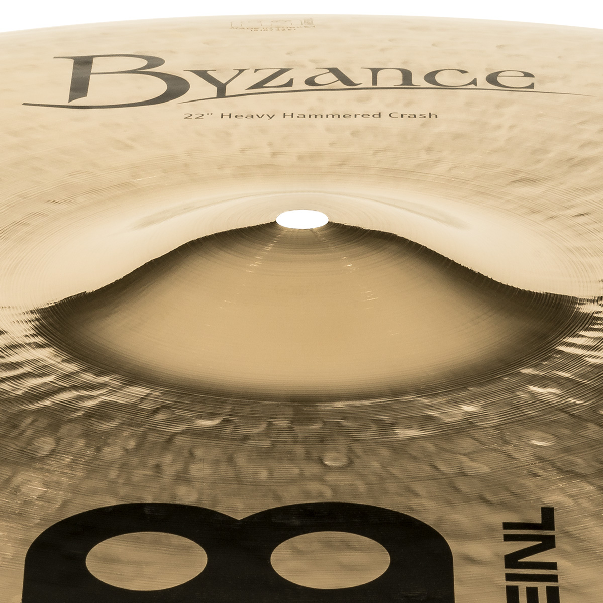 Crash de 22″ pulgadas, serie Byzance Heavy Hammered, poder explosivo, proyección cortante, fuerte y directo, respuesta clara, timbre medio brillante, carácter brillante y rico, tono agudo-medio, volumen medio, sustain medio, terminado brillante, fabricado con aleación de bronce B20.