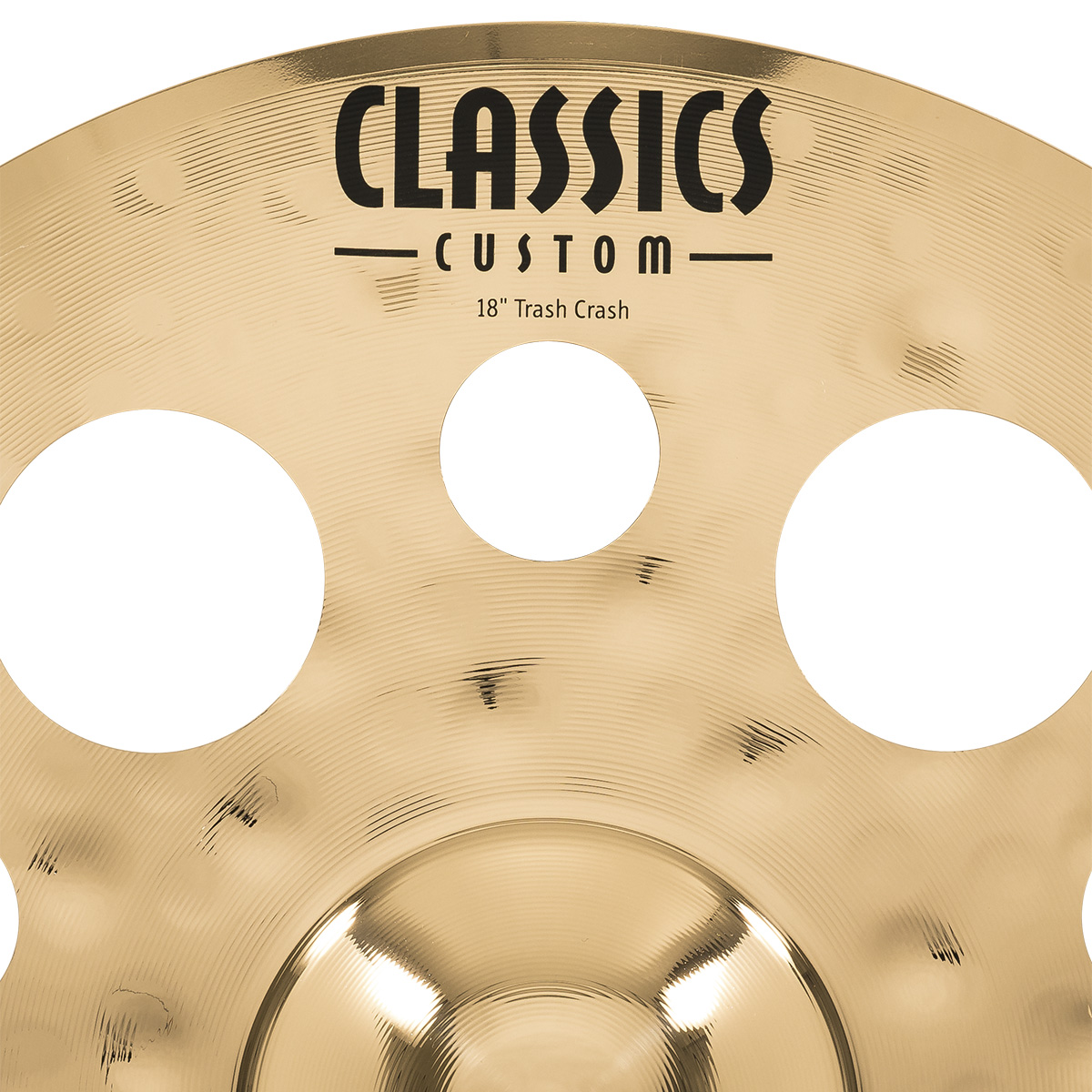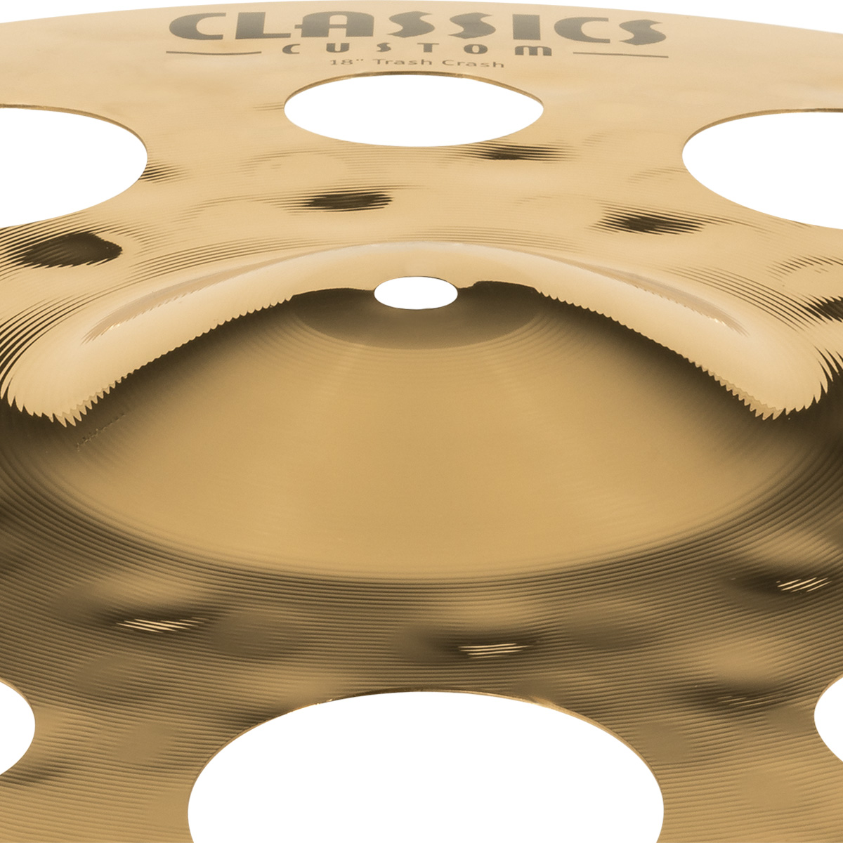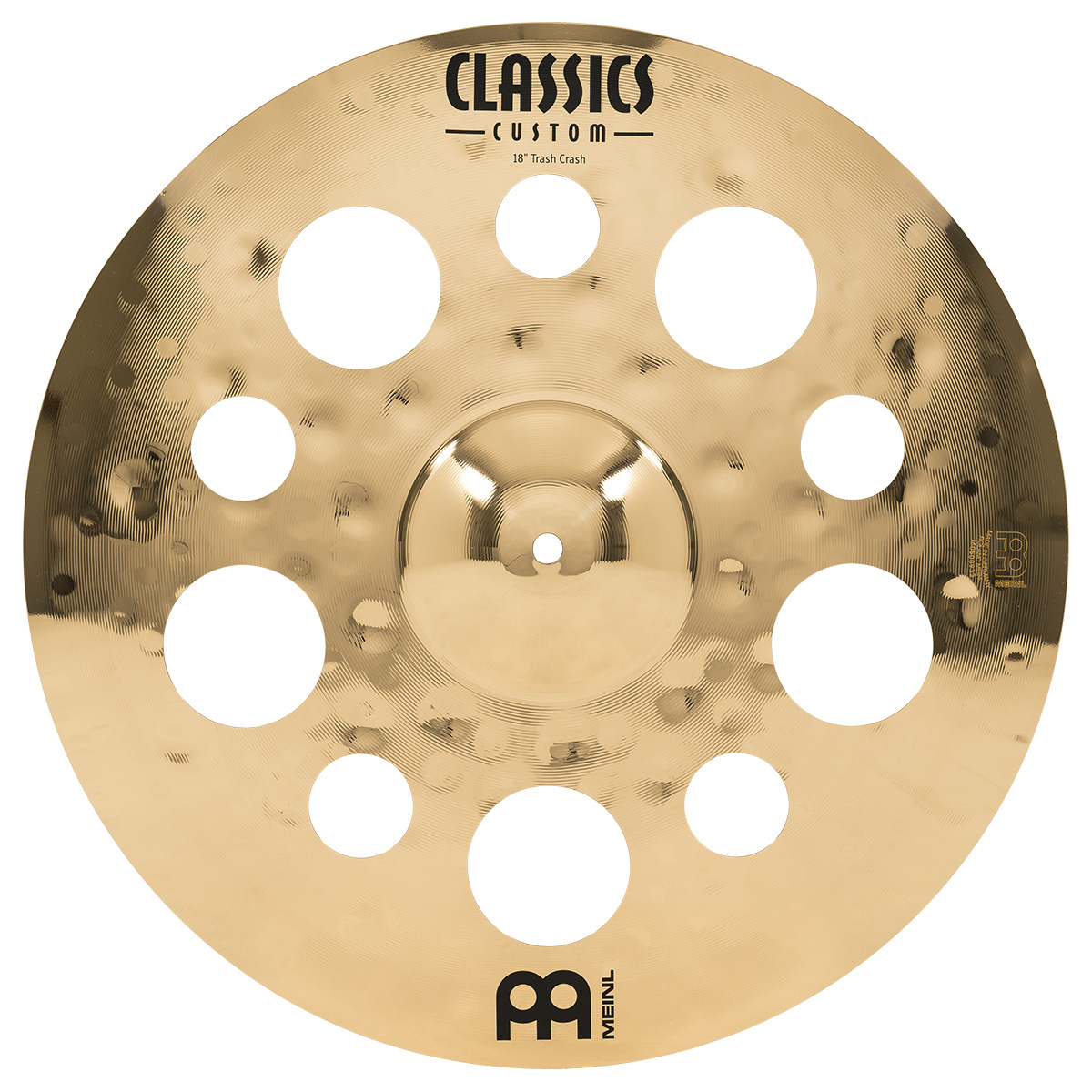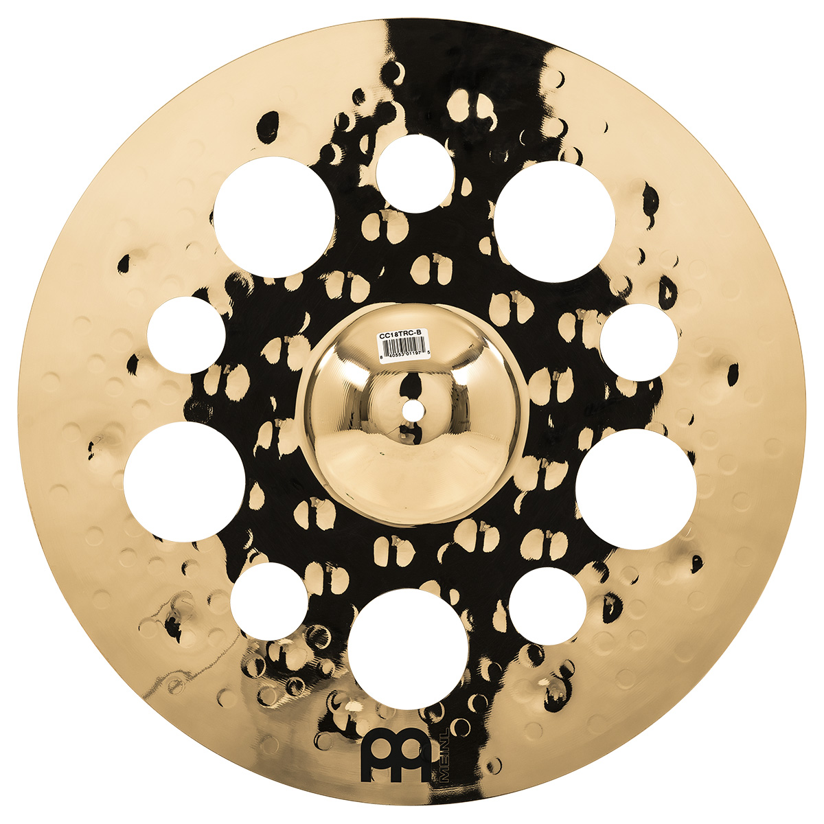 Platillo Meinl. Modelo: CC18TRC-B. Trash Crash. Diámetro de 18” pulgadas. SerieClassics Custom. Fabricado con aleación de bronce B12. Terminado brillante. Martillado por computadora. Hecho en Alemania.