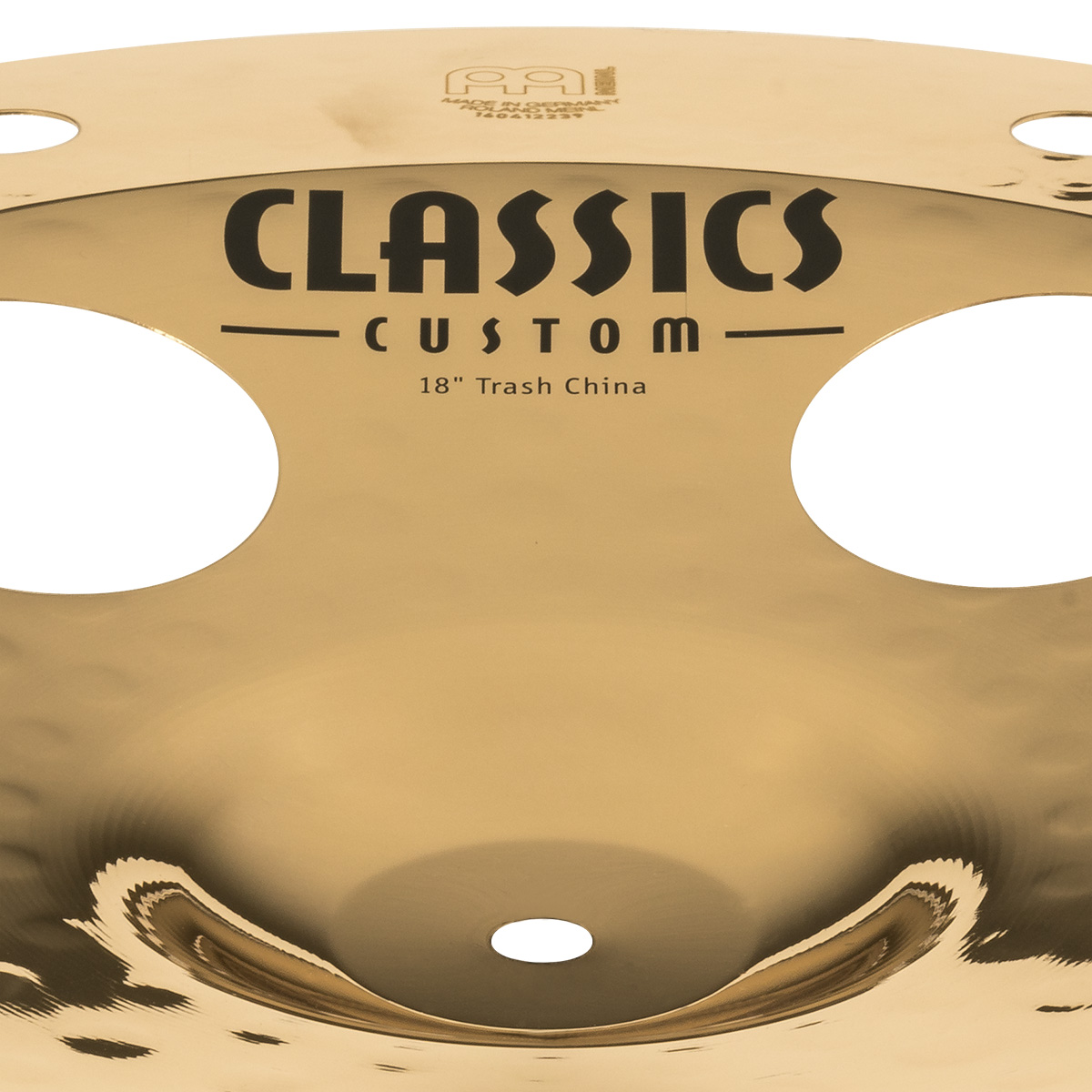 Un platillo china único con recortes de diferentes tamaños para un sonido más agresivo. El ataque final tiene poco sustain.