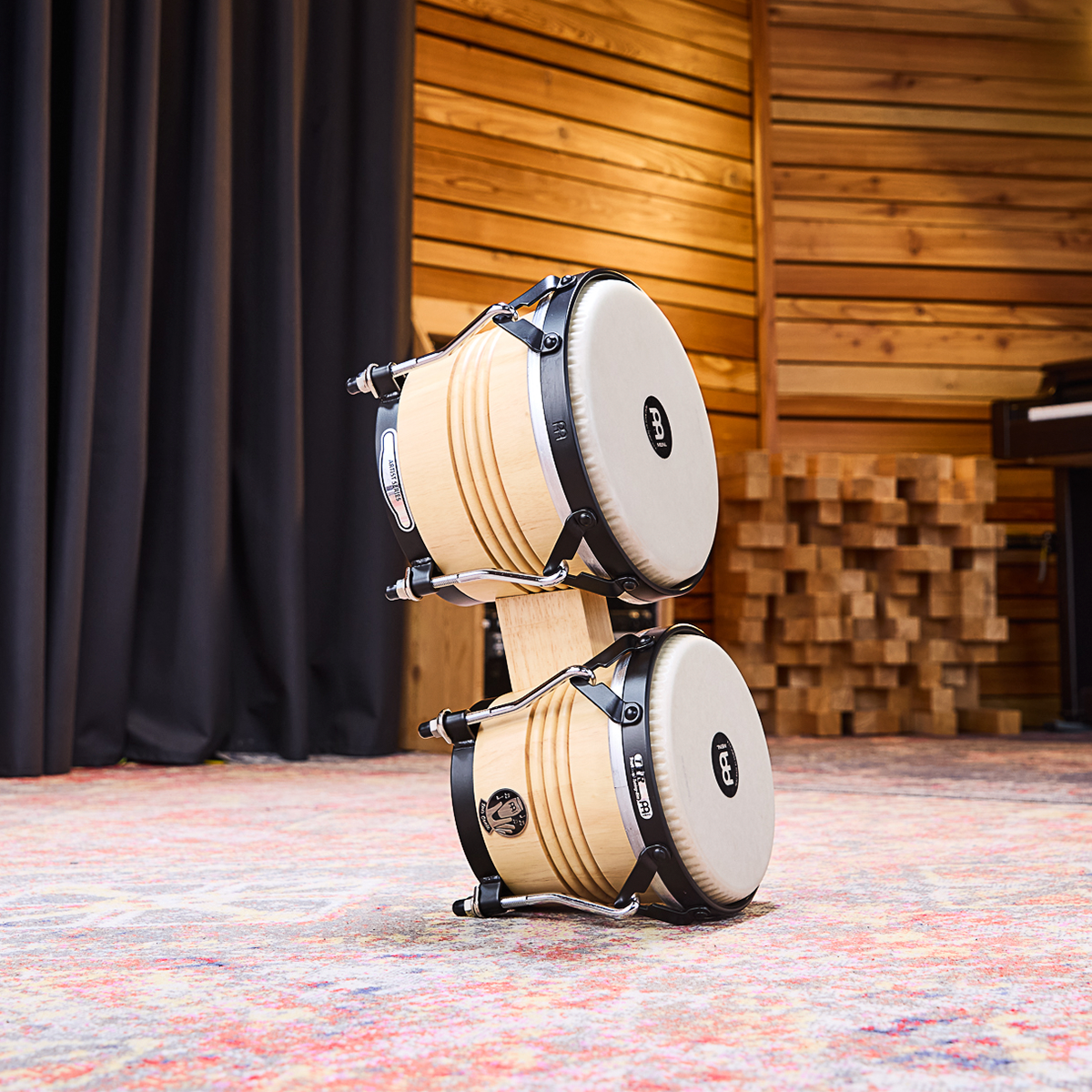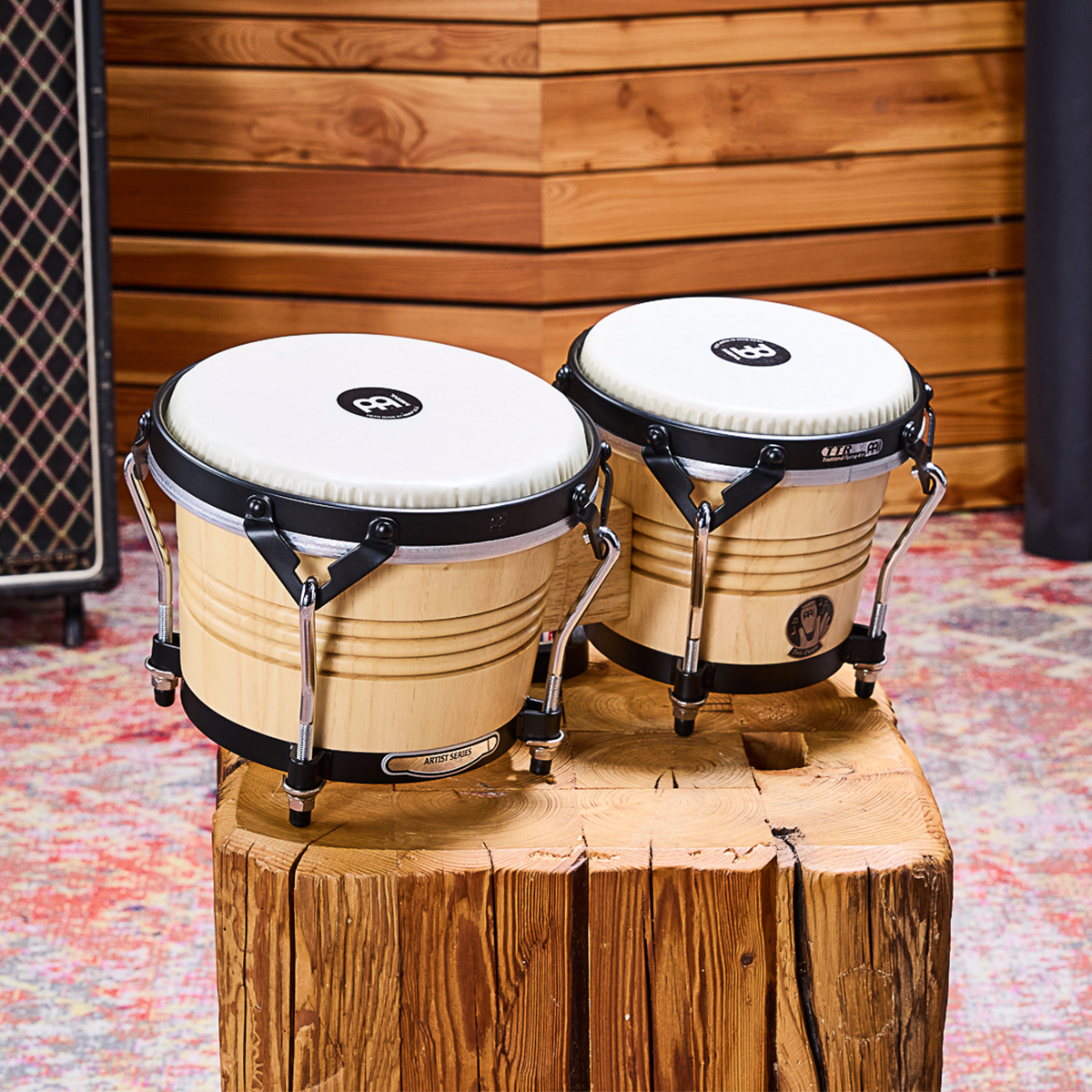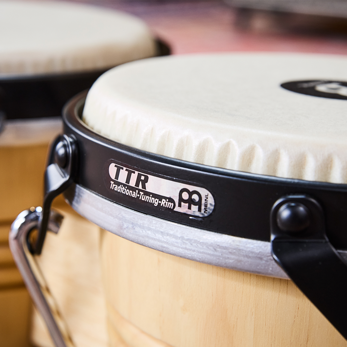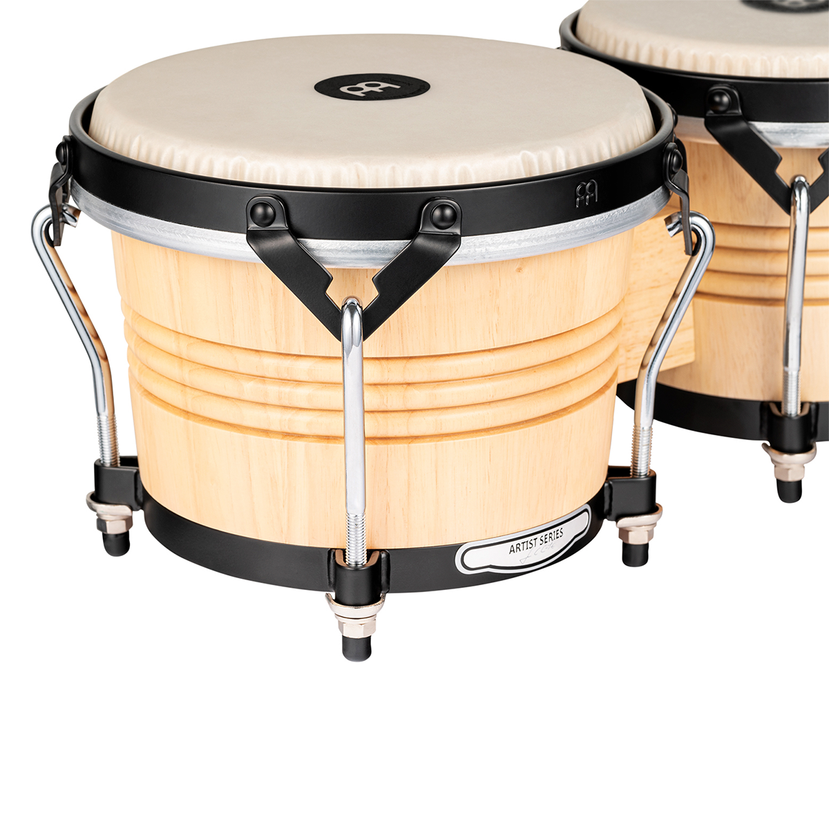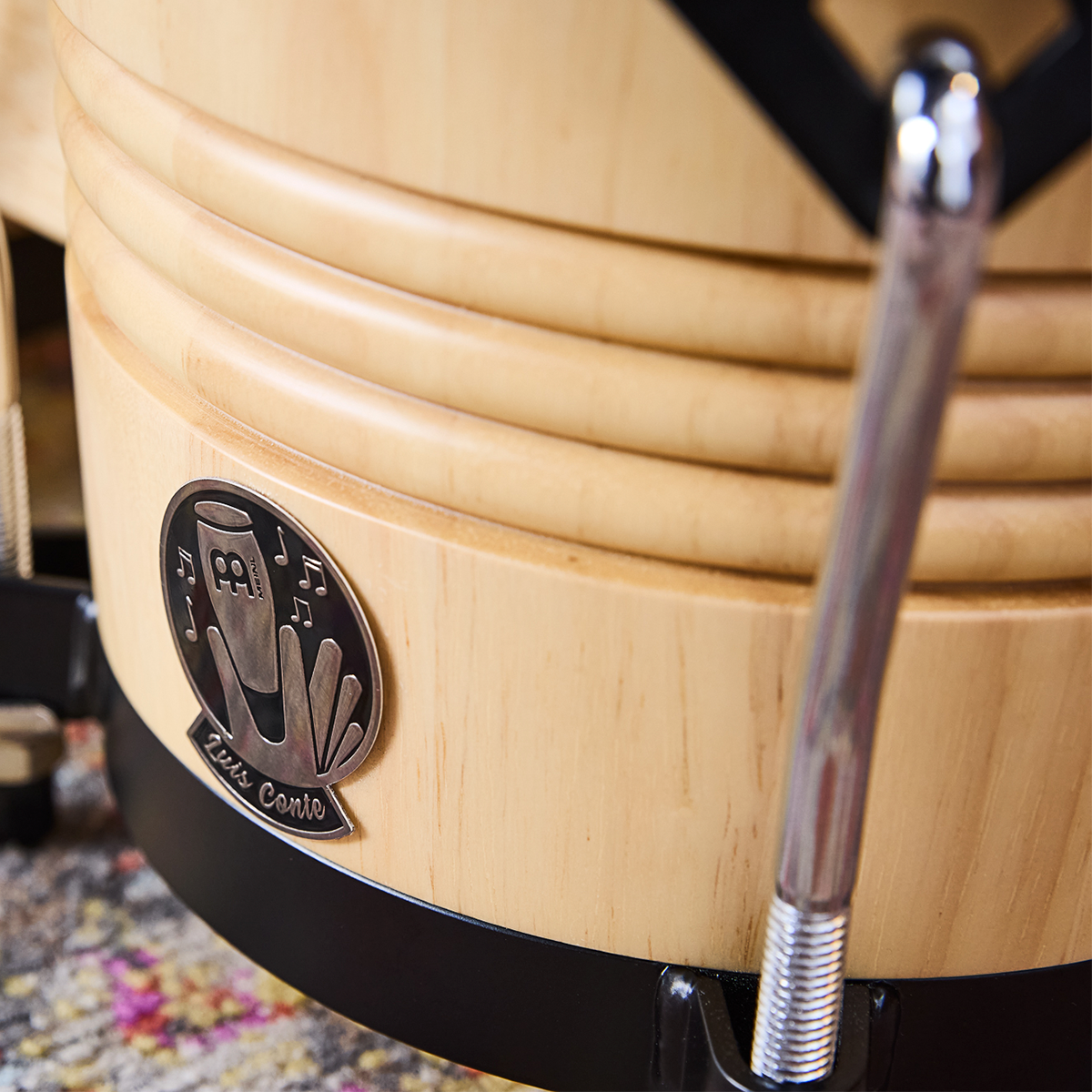 Bongos Meinl. Modelo: LC300NT-M. Serie Free Ride. Signature Luis Conte. Fabricado con madera de caucho. Parches de piel de vaca. Conexión por bloque de madera sólida. Hardware cromado con recubrimiento de polvo negro. Incluye llave para afinar, funda y aceite para hardware. Estilo natural y acabado tradicional.