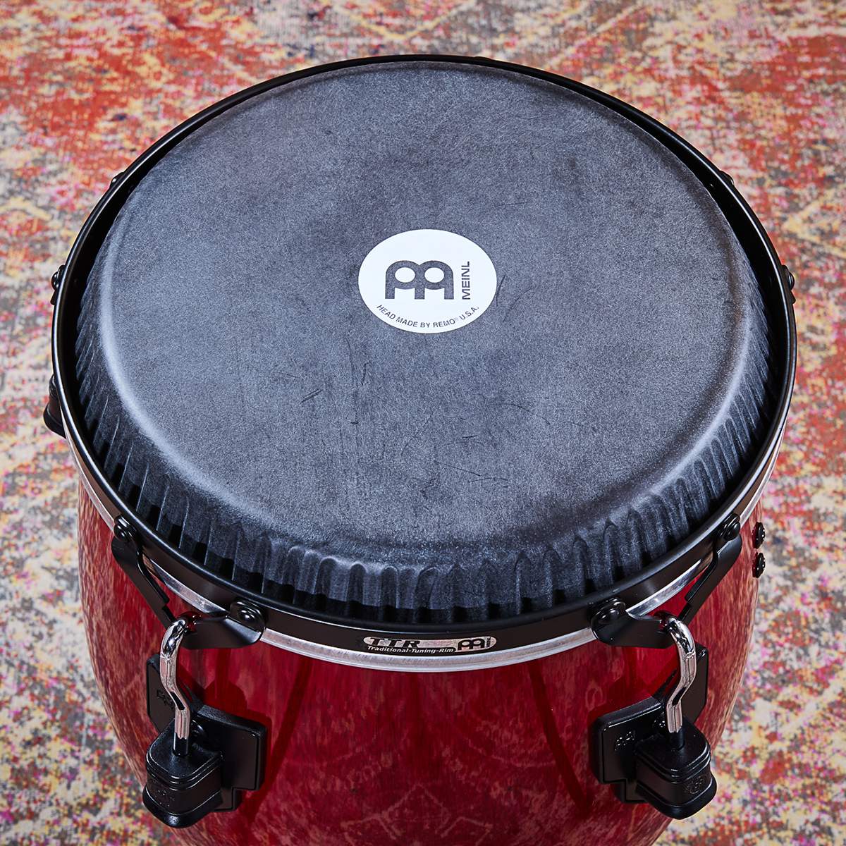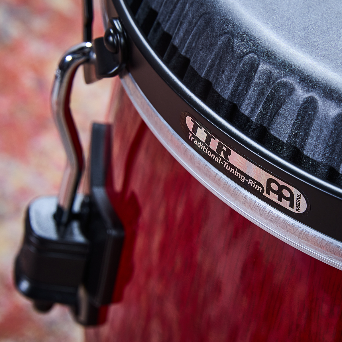Equipada con un parche de piel de becerro negro REMO® Skyndeep, esta conga ofrece un tono cálido y natural, ideal para una amplia variedad de estilos musicales. Los tornillos de afinación de 8 mm y el aro tradicional de 5 mm TTR-Rim permiten una afinación precisa y estable, adaptándose a las necesidades del músico profesional.