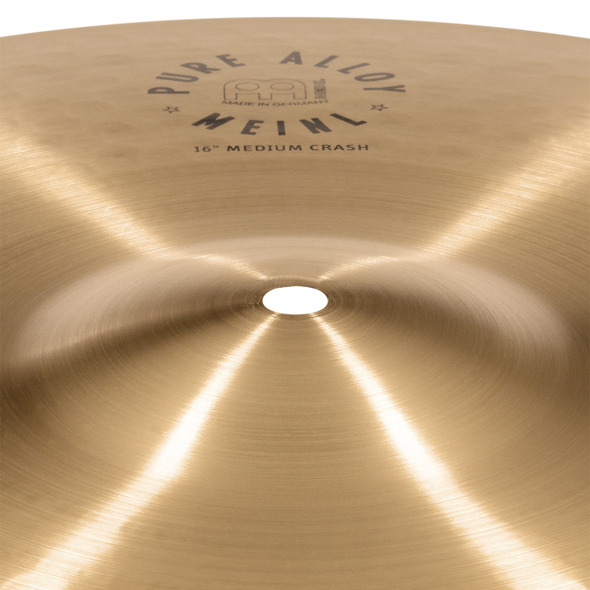 Los crashes de la serie Pure Alloy de Meinl te ofrecen un sonido fuerte lleno de agudos, medios y graves, seguidos por un sustain medio a largo.