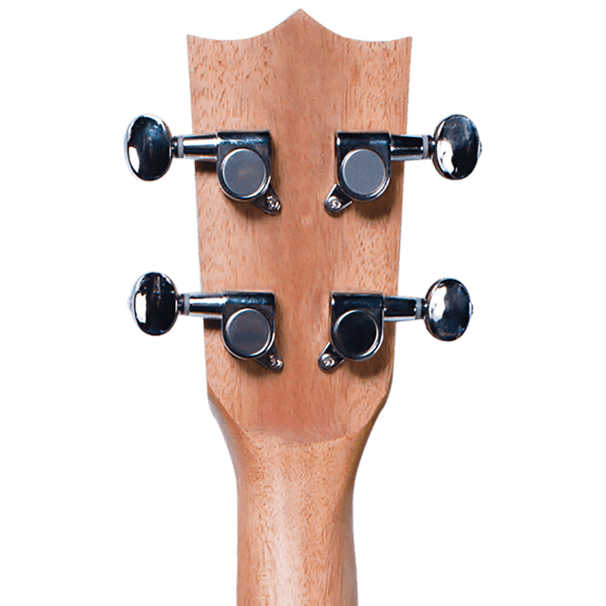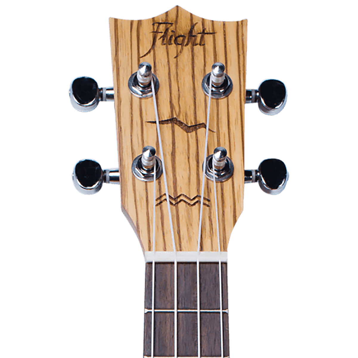 El diseño del cabezal es una parte integral de nuestra identidad. Todos los ukeleles Flight cuentan con un cabezal diseñado cuidadosamente equipado con afinadores engranados que siempre te mantendrán afinado.
