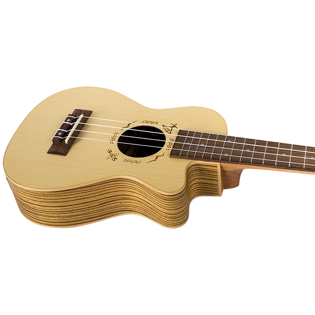 La parte superior de abeto Engelmann europeo y los lados de zebrawood se combinan para ofrecer un sonido agudo y contundente al tocar un sólo en el registro alto y cálido y aterciopelado cuando rasgueas junto a la chimenea. Finalmente puedes tenerlo todo de cualquiera de las dos formas.