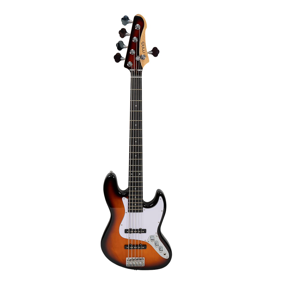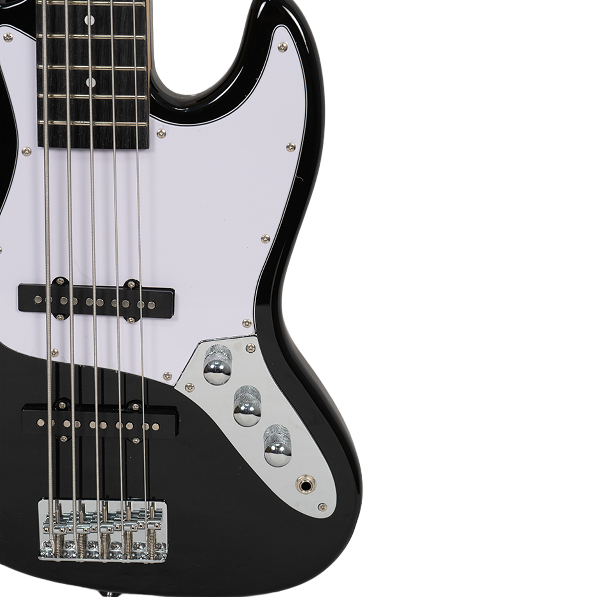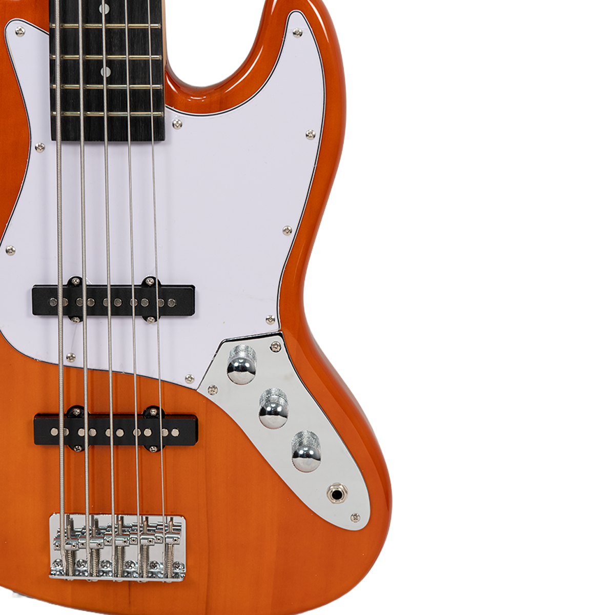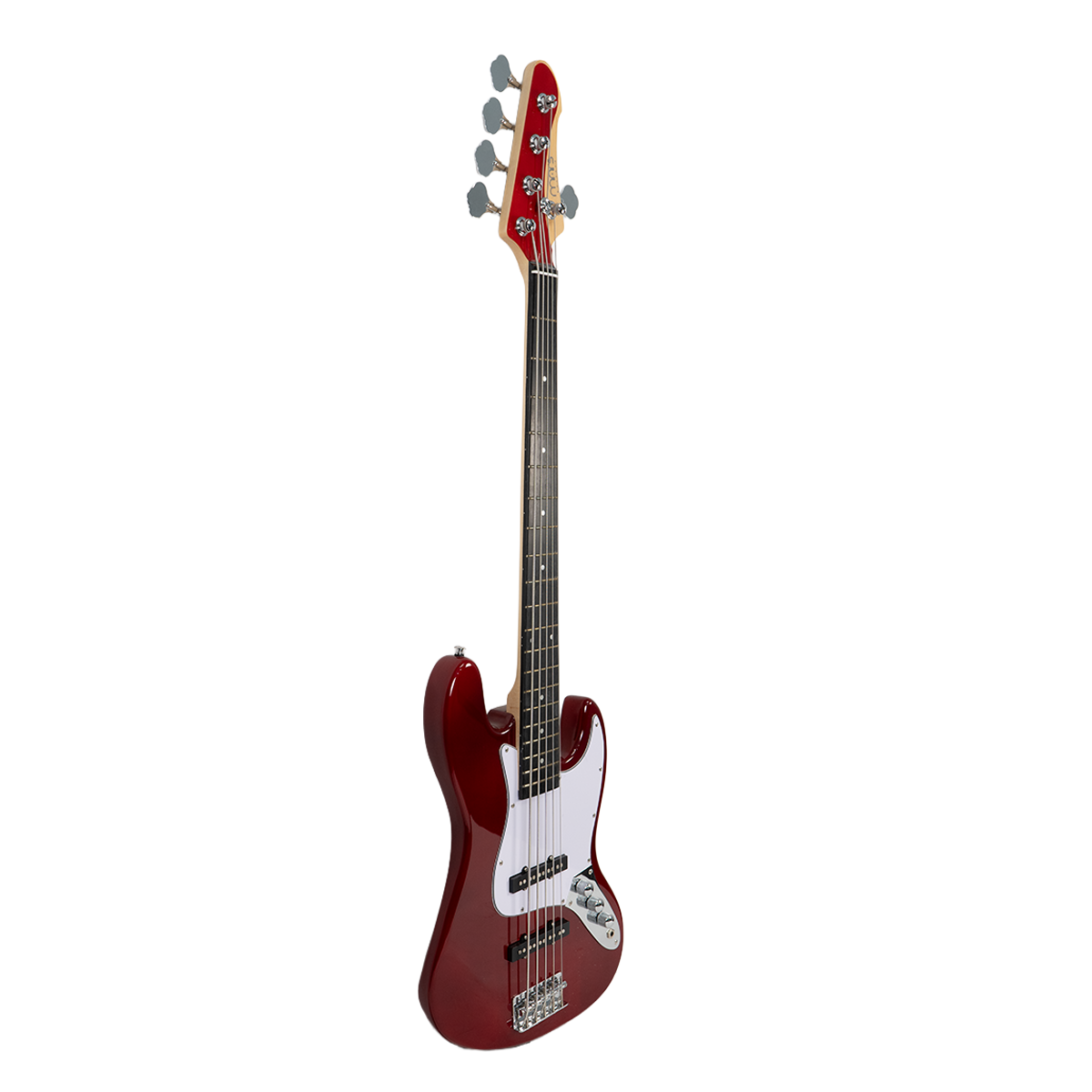 Bajo eléctrico Mars JB-5 de 5 cuerdas con mástil de arce en C-Shape y diapasón de amaranth de 9.5″ y 20 trastes medium jumbo. Su cuerpo de álamo con acabado en colores sólidos combina resistencia y estética sobria. Equipa pastillas pasivas tipo Jazz Bass, puente para 5 cuerdas, controles de 1 volumen, 1 balance y 2 bandas EQ. Herrajes cromados, cejuela PPS y truss rod dual-action garantizan afinación estable y ajuste preciso.