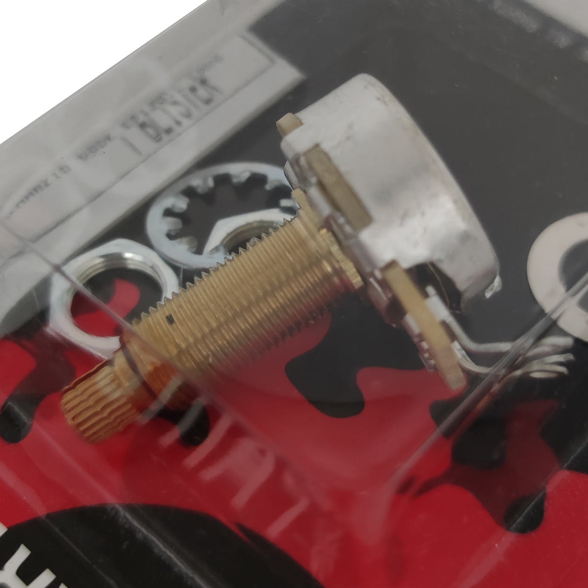 Potenciómetro, eje largo, 500 kilo-ohms, Long Shaft, para modelos tipo Les Paul o guitarras con cuerpos profundos y tapas delineadas.