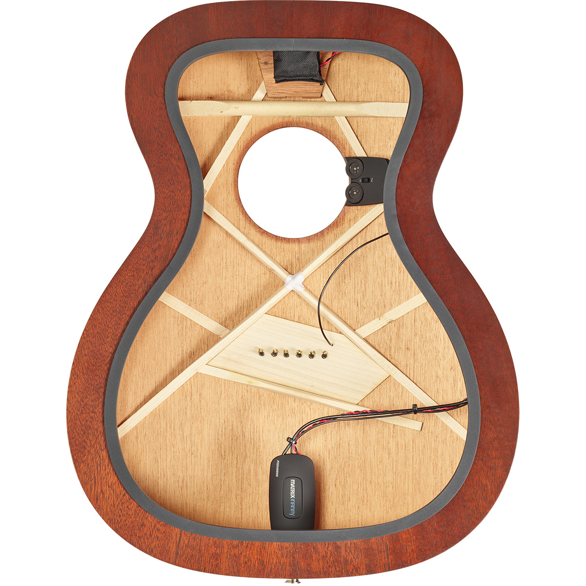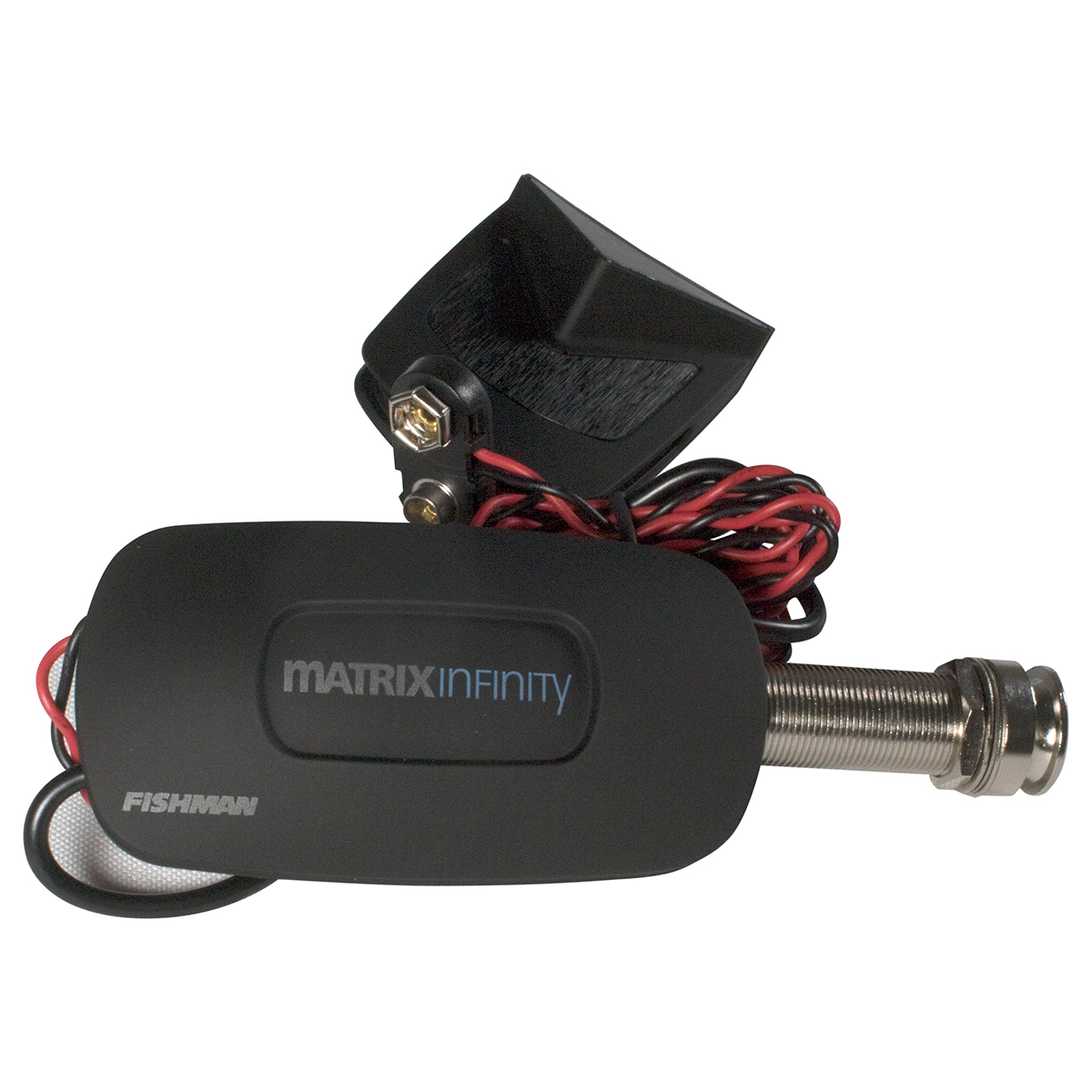 Pastilla para guitarra, Matrix Infinity VT Pickup & Preamp System, formato ancho, preamplificador montado en jack Endpin en una carcasa de tacto suave de nuevo diseño, recinto diseñado para controles de volumen y tono montados en la boca de la guitarra, exclusivo control de tono Scoop que corta los medios mientras aumenta los agudos y los graves, interruptor de voz accesible y reubicado que se adapta a todos los tamaños de cuerpo de guitarra y situaciones en vivo, indicador LED de batería baja integrado ubicado en el preamplificador interno, incluye módulos de control de cuerdas de acero y cuerdas de nylon, herrajes de montaje y botón de tahalí cromado, conexiones sin soldadura, se recomienda instalación profesional, longitud estándar de la pastilla de 2.65″ (67.3 mm) se ajustará a la mayoría de las guitarras con espaciado entre cuerdas de 2.5″ (63.5 mm), utiliza una pila de 9V, vida de la batería: 160 horas.