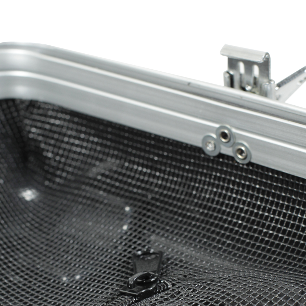 Tapas equipadas con un práctico bolsillo de malla con cierre para guardar cables y accesorios.