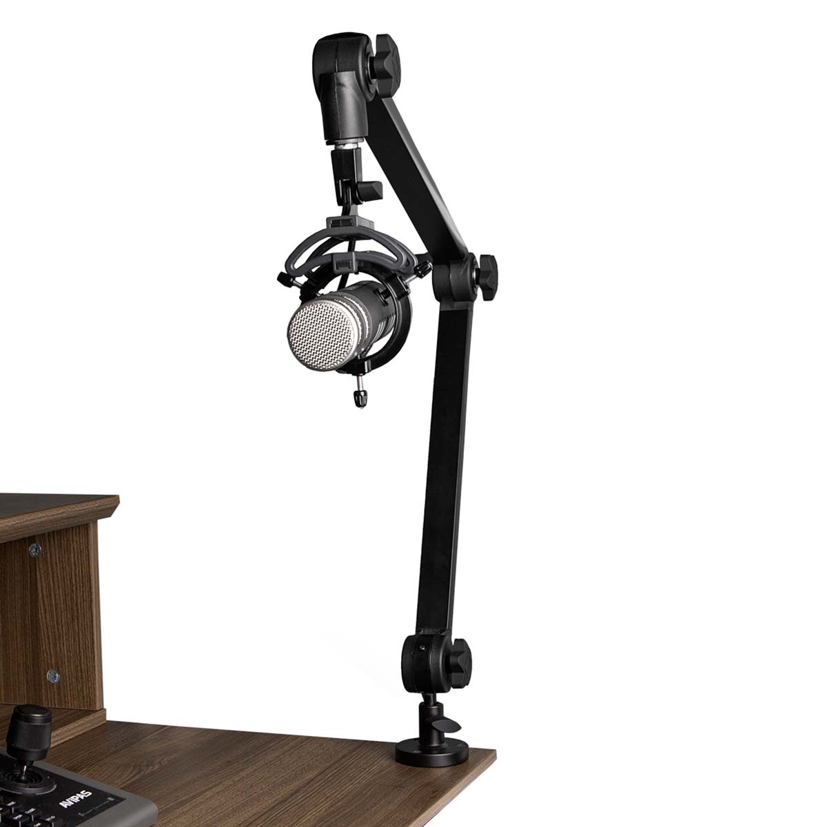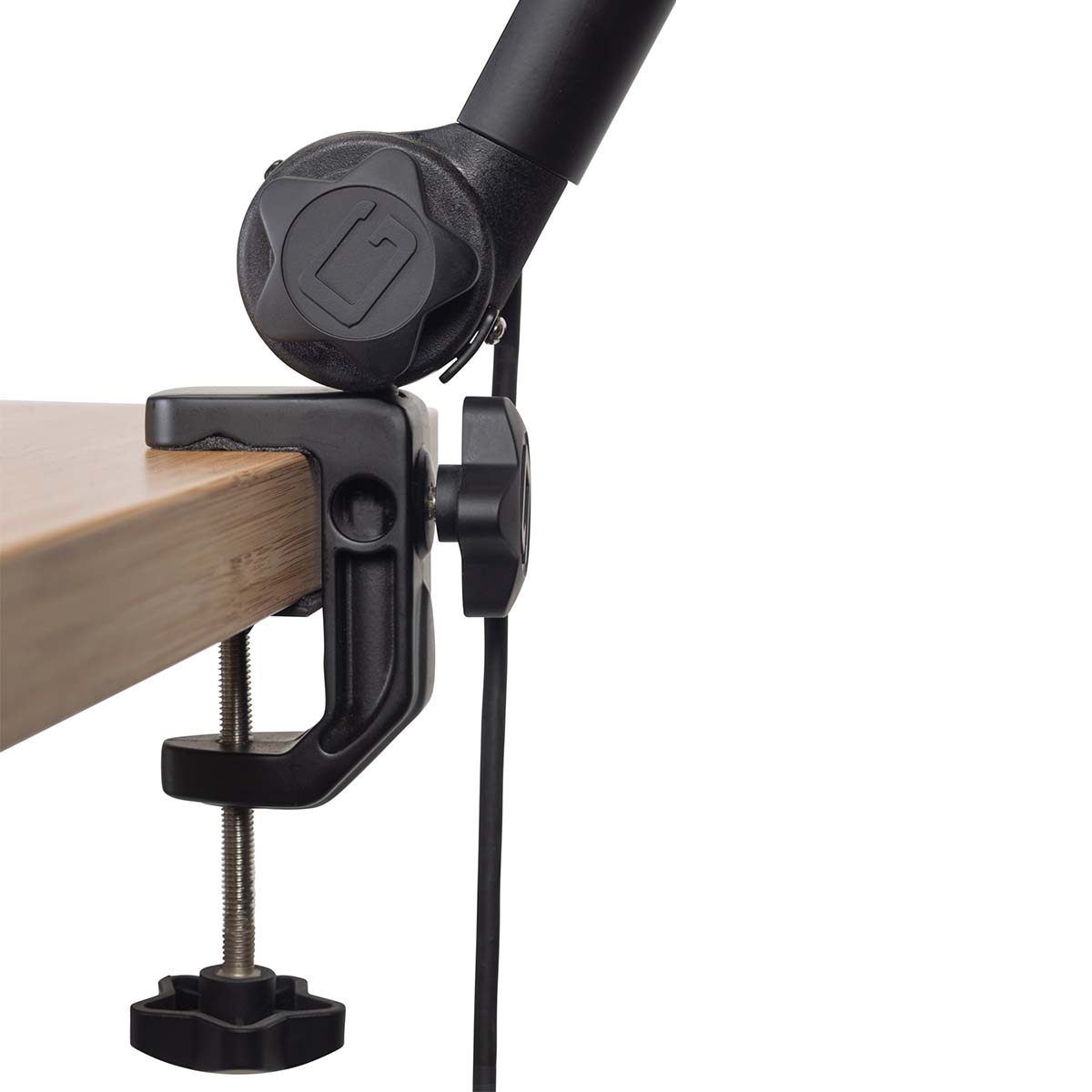 El Soporte de Micrófono de Escritorio Gator GFWMICBCBM3000 es ideal para podcasts y grabaciones, con brazo articulado con resorte que se extiende hasta 940 mm y soporta micrófonos de hasta 2 kg. Gira 360° con mínimo ruido, incluye cable XLR de 3,05 m con guía interna y se fija fácilmente a mesas de hasta 55 mm de grosor. Fabricado en acero resistente, viene con kit de montaje y abrazadera.