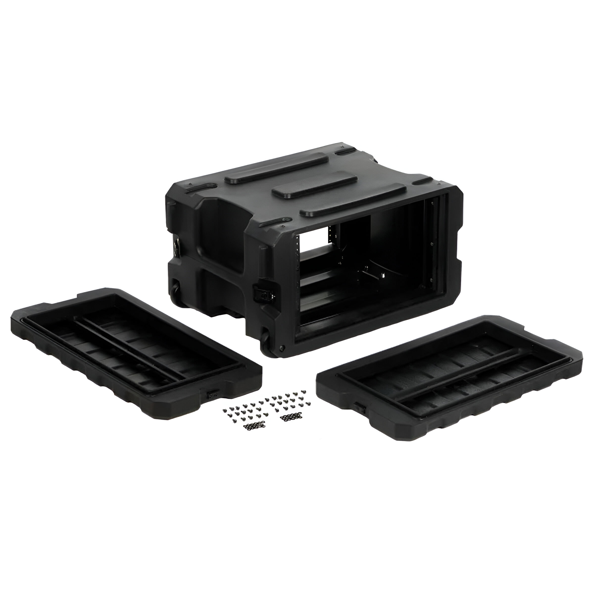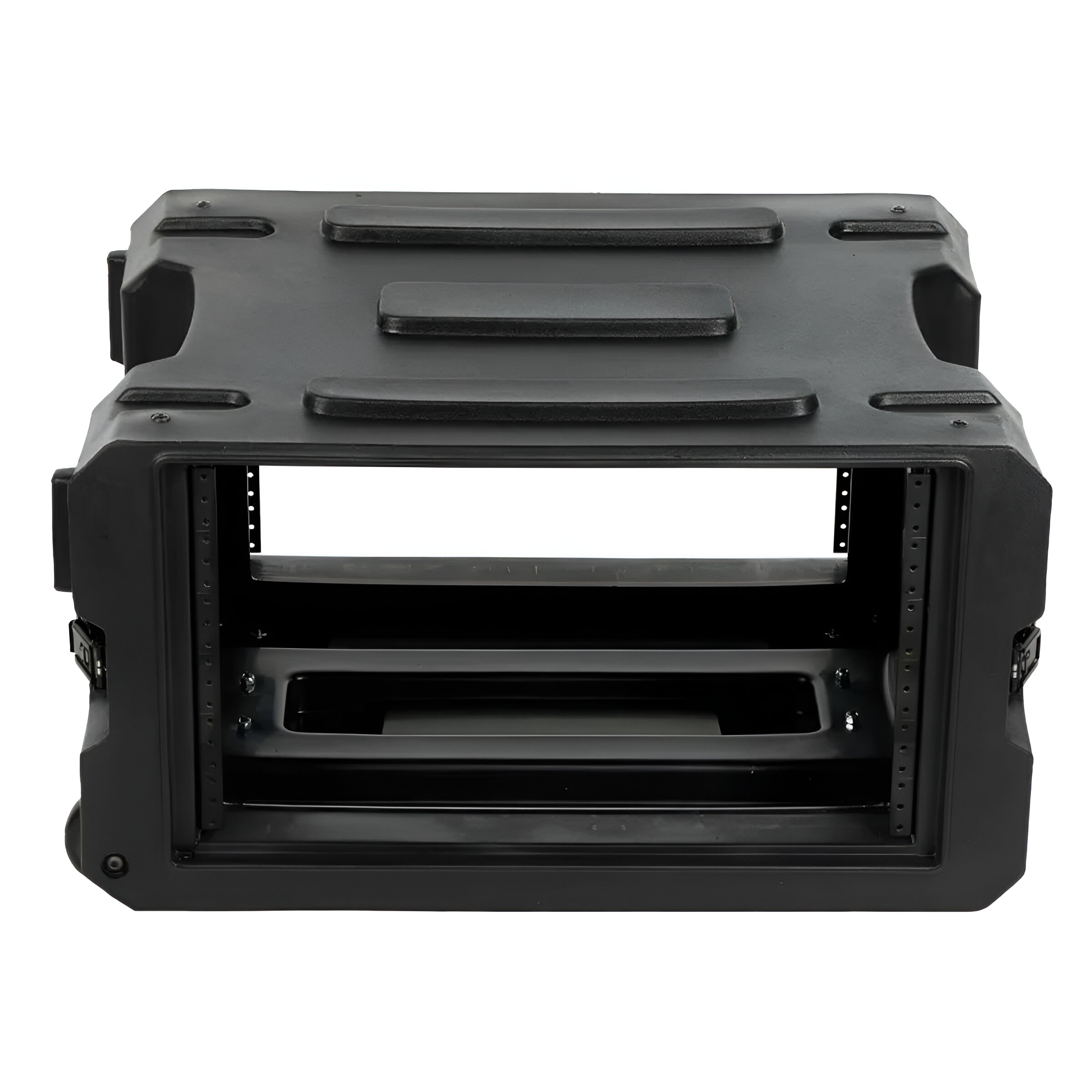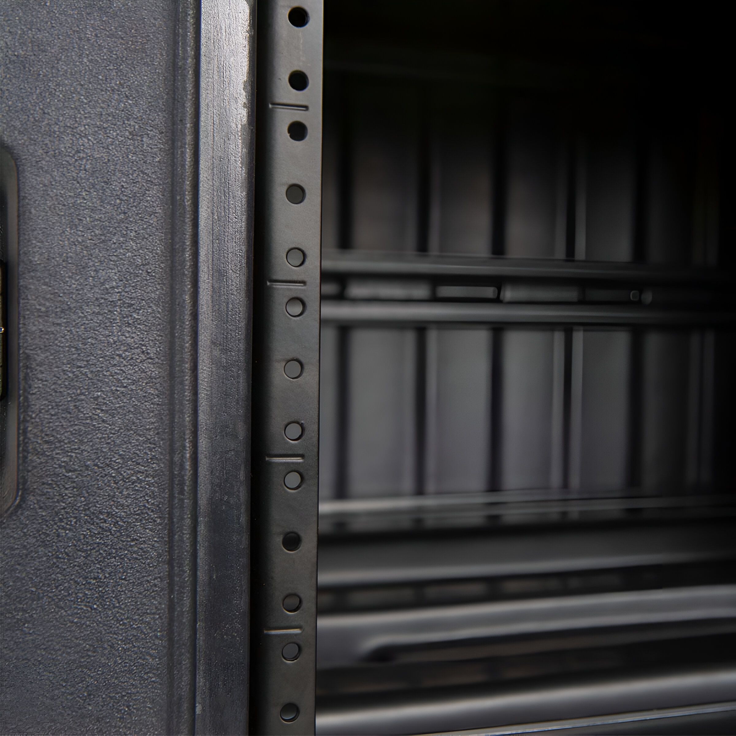 Con una capacidad de 6 unidades de rack y una profundidad estándar de 19 pulgadas, este modelo cuenta con rieles roscados frontales y traseros, así como tapas delanteras y traseras de tamaño completo, lo que permite un acceso completo al equipo sin comprometer la protección.
