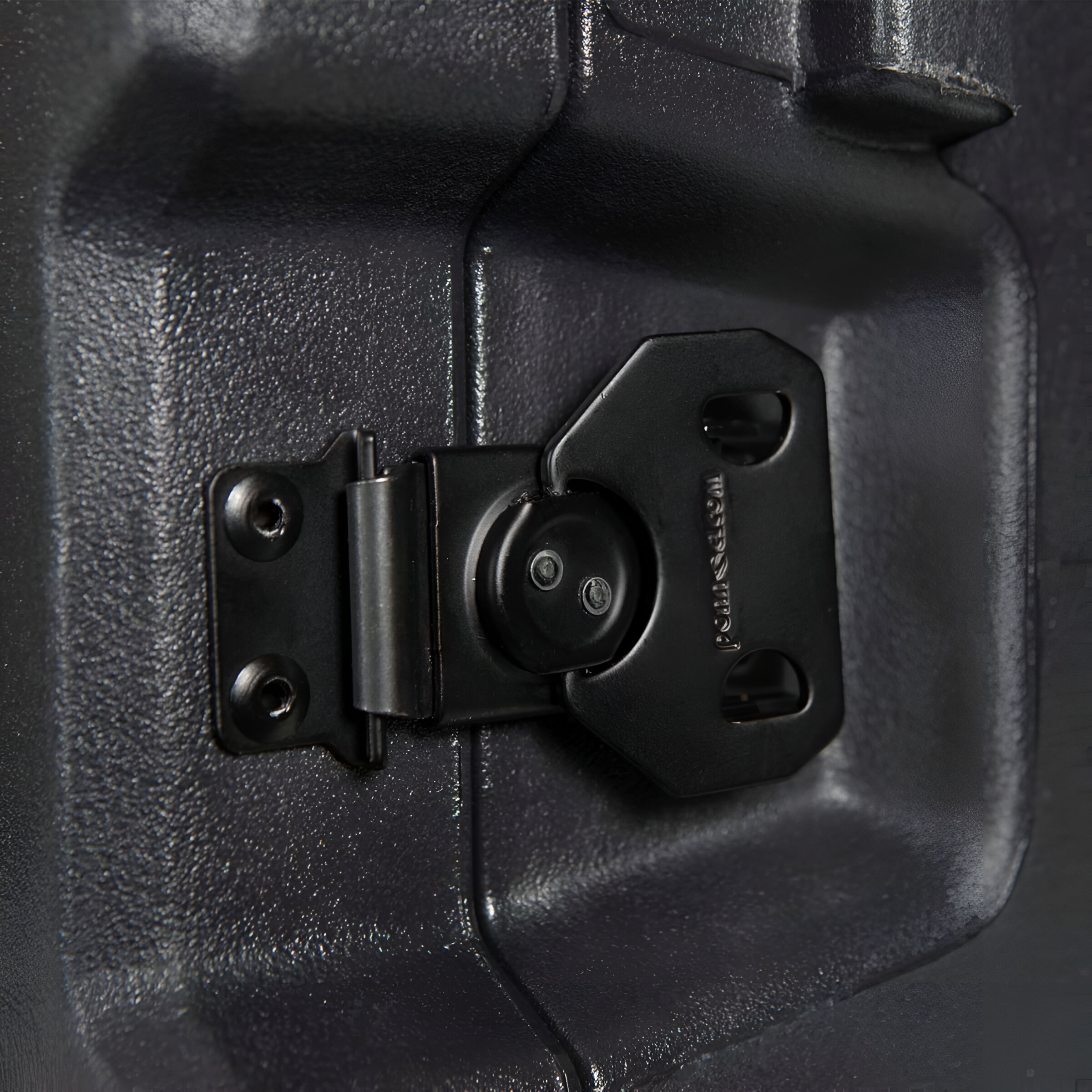 Sus pestillos giratorios de acero empotrados aseguran un cierre firme y duradero, mientras que su construcción con materiales reciclados refleja un compromiso con la sostenibilidad.