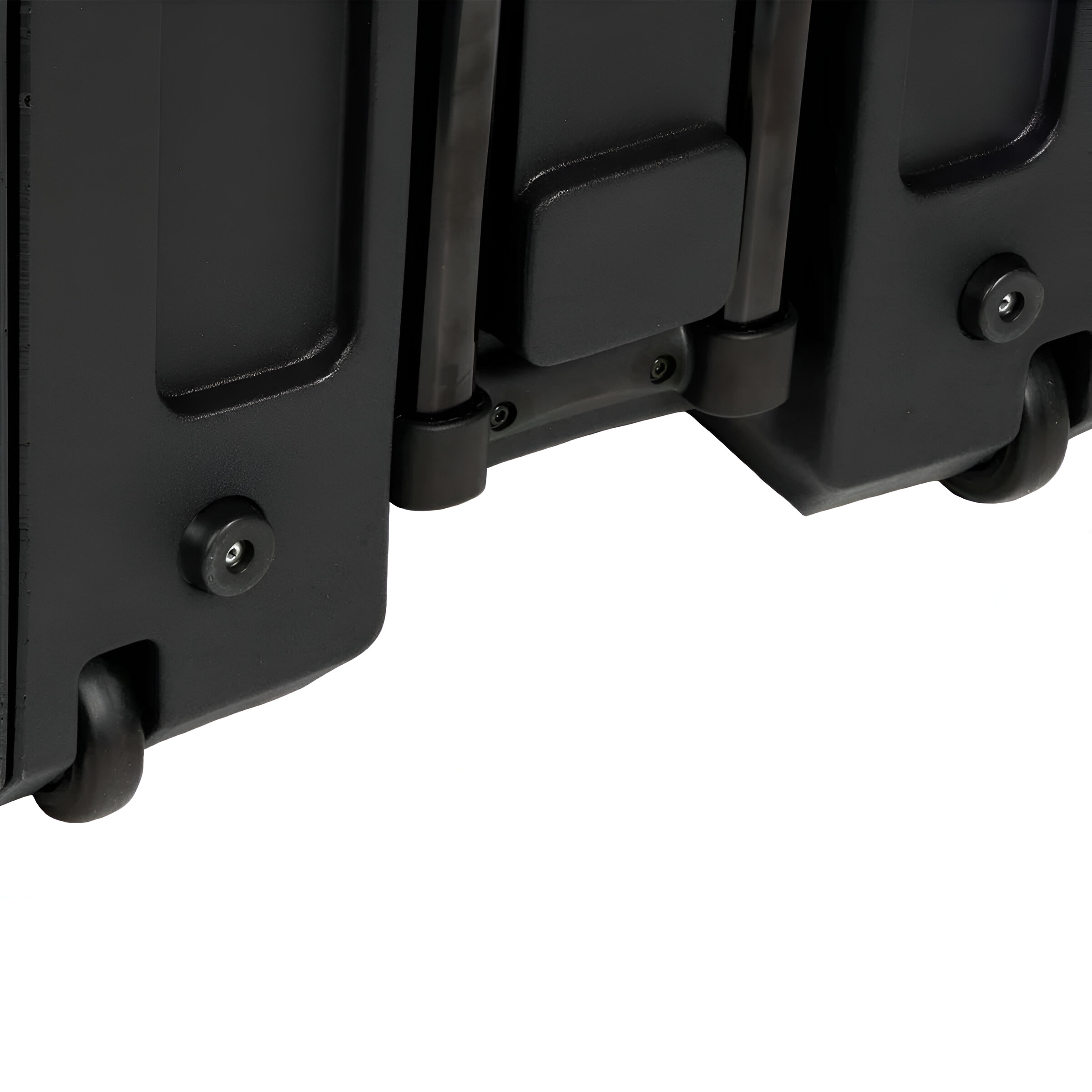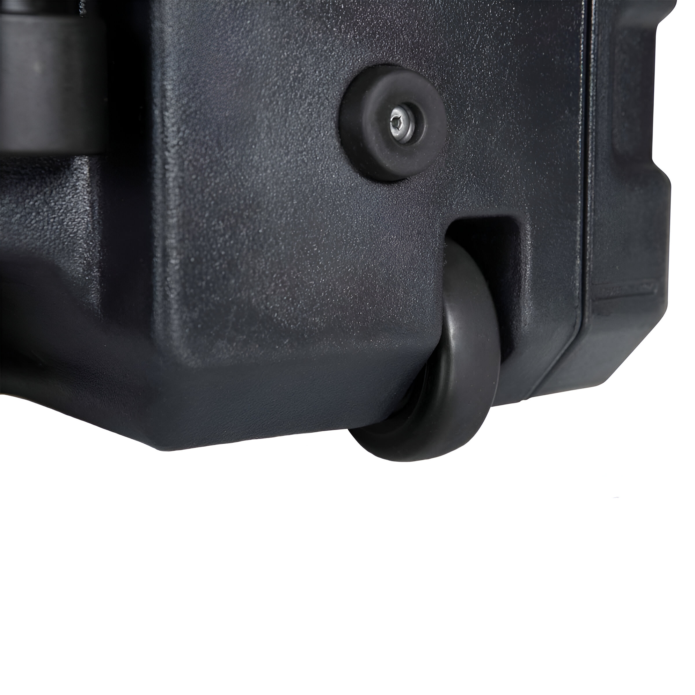 Pensado para facilitar el transporte, incorpora dos asas ergonómicas laterales moldeadas, además de una asa telescópica estilo trolley que, en combinación con sus ruedas tipo patín de alto rendimiento, permite moverlo sin esfuerzo, incluso en terrenos irregulares.